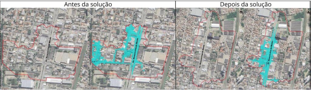 A região da Imbiribeira, na zona sul do Recife (PE), caracteriza-se por uma planície estuarina de baixas cotas, o que dificulta o escoamento das águas pluviais. O adensamento urbano, muitas vezes irregular, intensificou a impermeabilização do solo, ampliando os picos de cheia e expondo milhares de famílias a riscos hidrológicos e sanitários. No local, a Avenida Mascarenhas de Morais apresenta uma configuração hidrológica complexa, com áreas rebaixadas no interior da bacia que impedem o escoamento superficial a jusante, resultando em pontos crônicos de alagamento. O desafio proposto à engenharia não foi apenas drenar a água, mas conceber um sistema capaz de operar em uma malha urbana consolidada, sem desapropriações massivas e seus impactos sociais. Diante da escassez de terrenos livres para grandes lagoas de contenção na região, a solução técnica adotada pela TPF Engenharia foi a implementação de reservatórios sob o pavimento e dois sistemas bombeados.